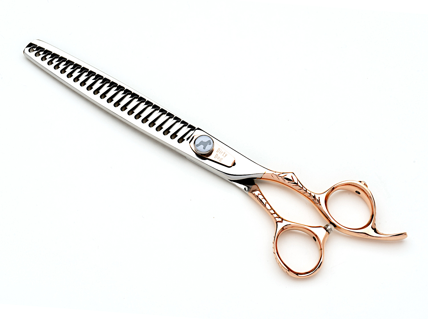 Order ANY 3 Dirty Dog Shears from the Rose Collection: 6.5” Straight, 6.5” Curve, 7.5” Straight, 7.5” Curve, 8” Straight, 8” Curve, 48 Regular Teeth Thinner, D-48 DOUBLE Teeth Thinner, D-35 DOUBLE Teeth Thinner, 23 Teeth Chunker, 13 Serrated Teeth Chunker