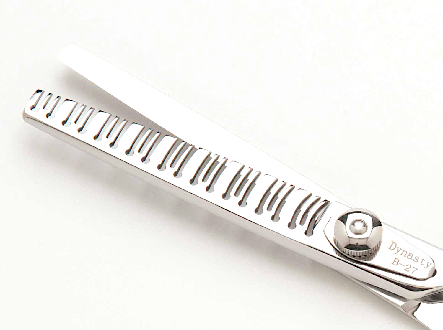 The Dynasty B-27 is an affordable thinner that creates a unique cut that is reminiscent of point cutting – a great time saver!