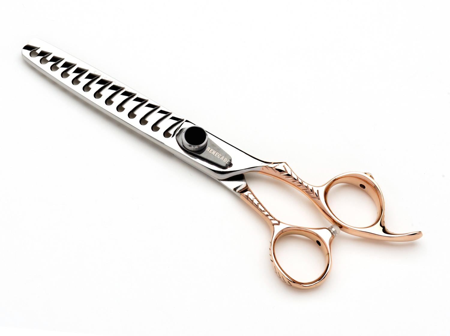 Silver blade and convex edge results in a smoother cut – chunker effortlessly glides through fur and hair