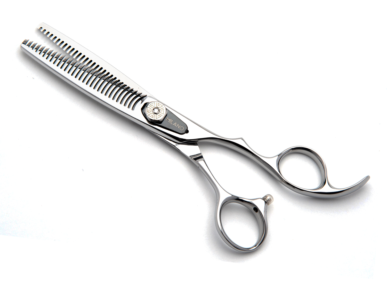 The extremely popular Mirage Milano now comes in a double teeth thinner – incredibly comfortable handle design and does not leave a line in the hair.
