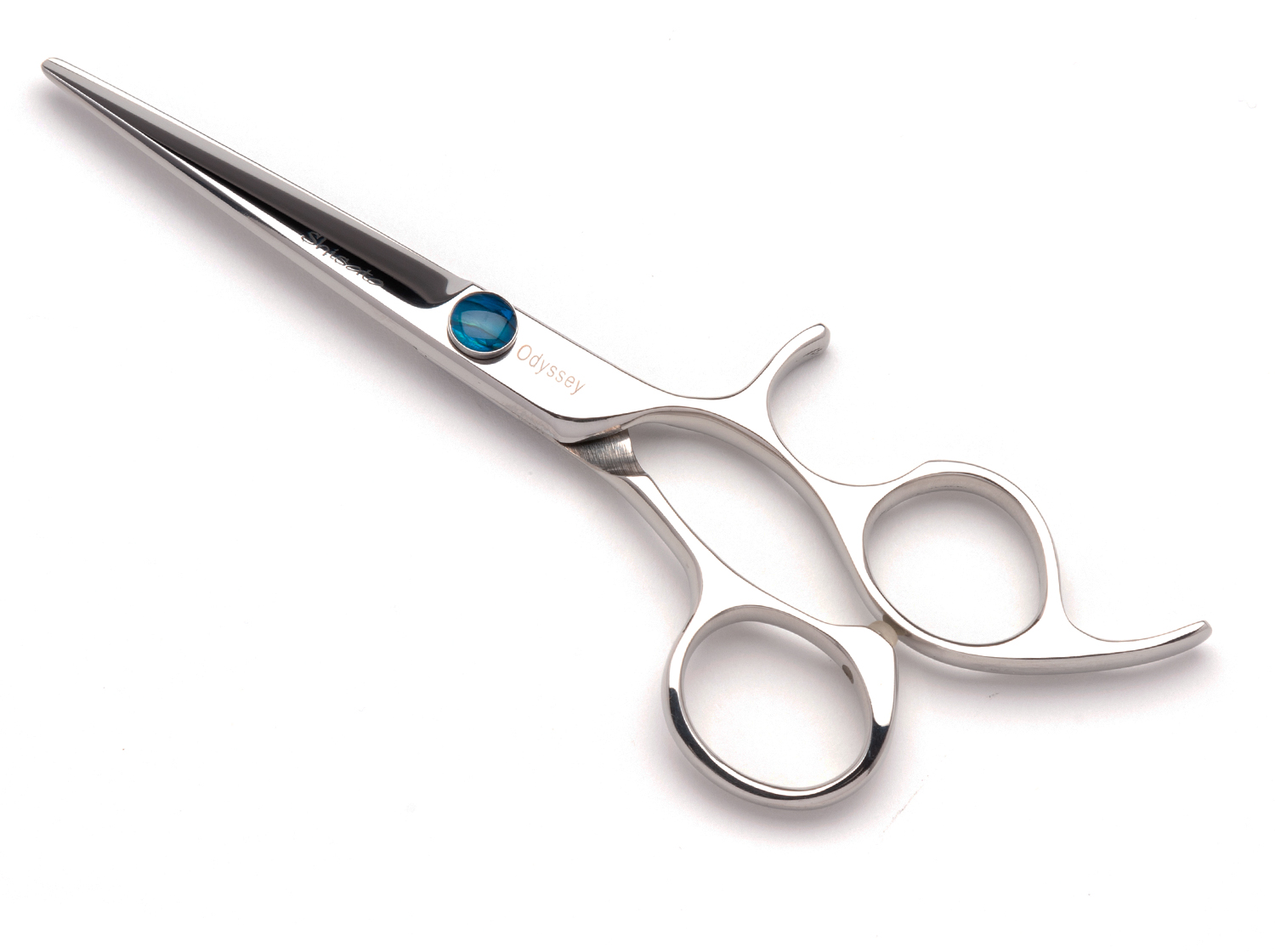 The Shisato Odyssey is a high quality Japanese hair cutting shear that features two and a half finger holes for more control as the stylist is cutting, and also more ease to remove her hand as she flips or palms her shears.