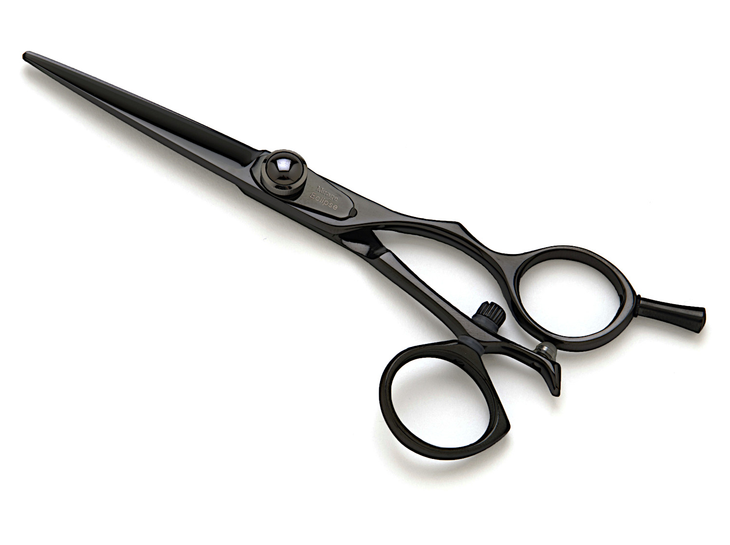 The Mirage Eclipse shear features a beautiful black titanium coating with an ergonomic swivel thumb ring that helps stop pain in your hand, shoulder, elbow, and back.