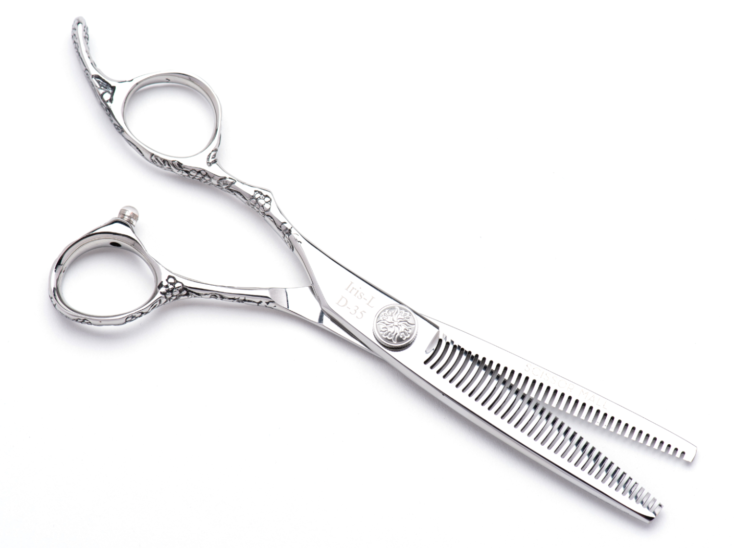 The Dynasty Iris D-35 DOUBLE teeth thinner is an affordable TRUE LEFT-HANDED double teeth thinner.