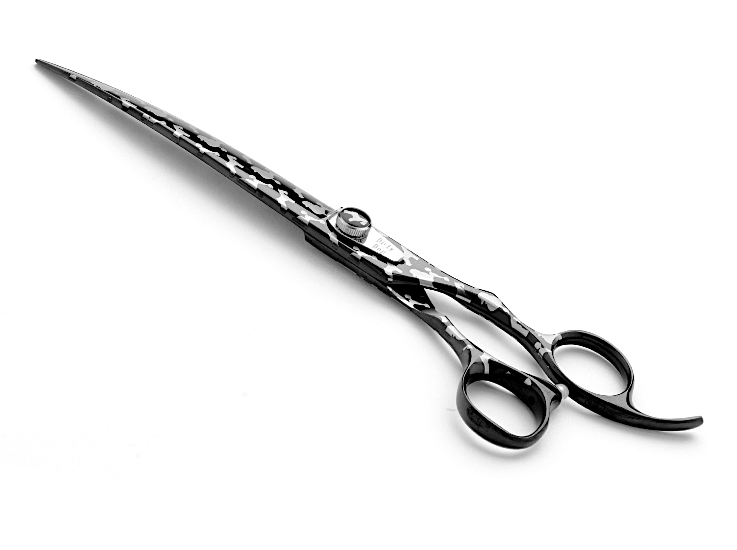 Dirty Dog Shears are for groomers who want to show their love for dogs and grooming! They cut beautifully and are very popular among groomers. They have a unique black titanium finish with a dog pattern. They feature a Scottish terrier dog dial for tension adjustment. Professional quality scissors for professional quality groomers.