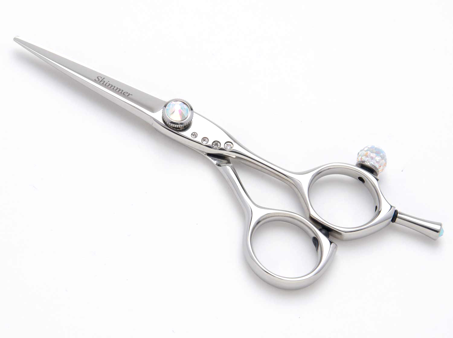 The Debut Shimmer is the bling scissor – features a large crystal ball on the top of the finger hole with 4 diamonds at the tension area and a diamond pivot dial.