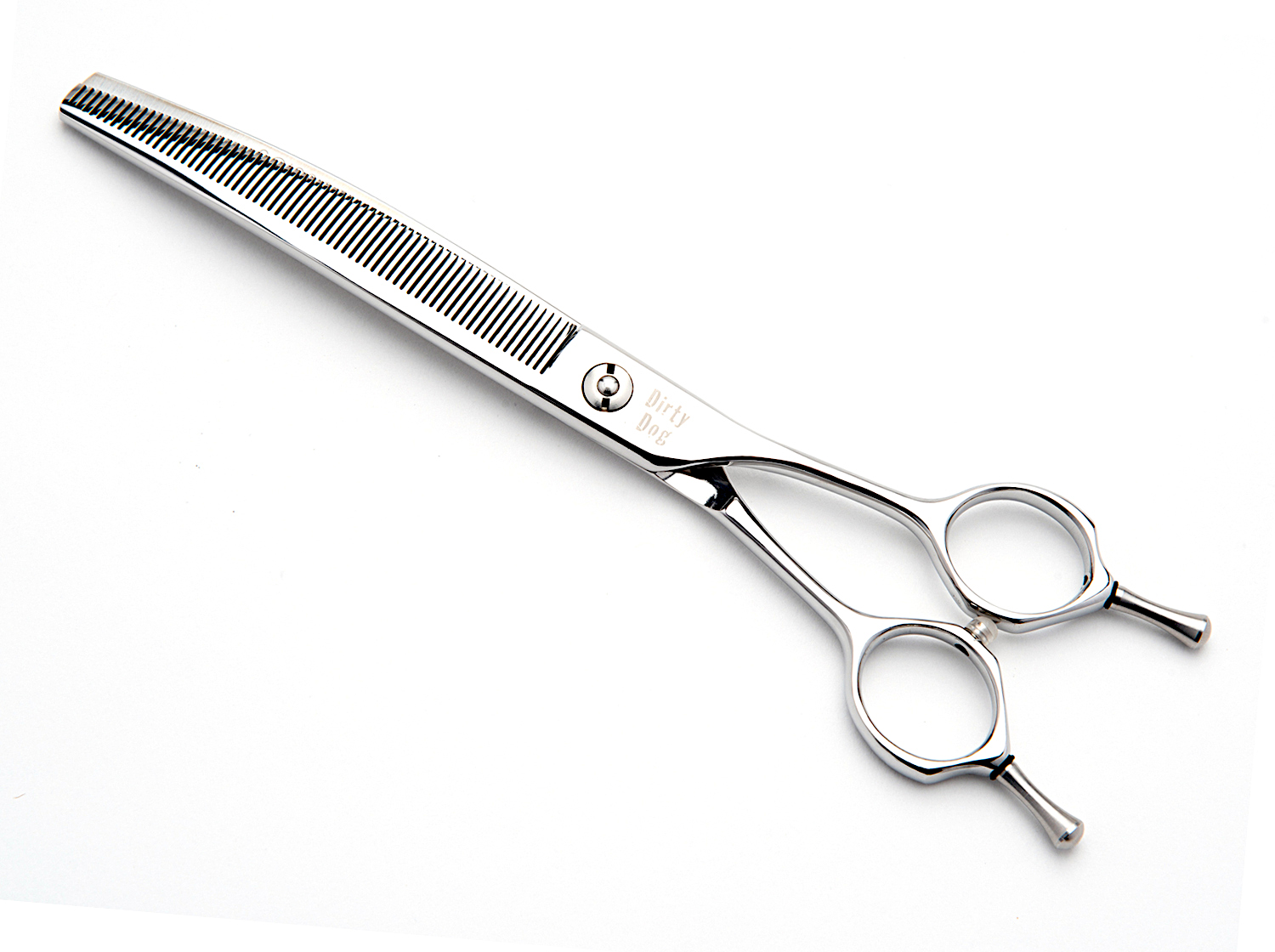 Dirty Dog XC-66 is an EXTREMELY smooth, high quality curve thinning shear that is perfect for thinning fur/hair around the dog’s face, legs, etc (any curved area) – groomers are LOVING this curve thinner!