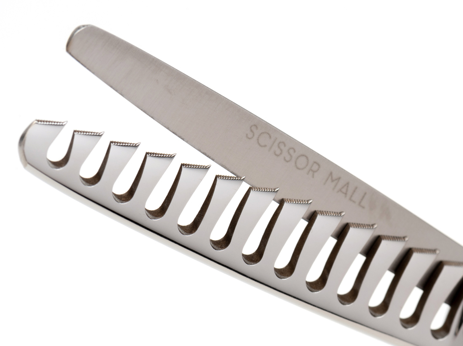 Chevron engraving on the handle with a clear diamond charm on the finger hole – this shear is gorgeous!